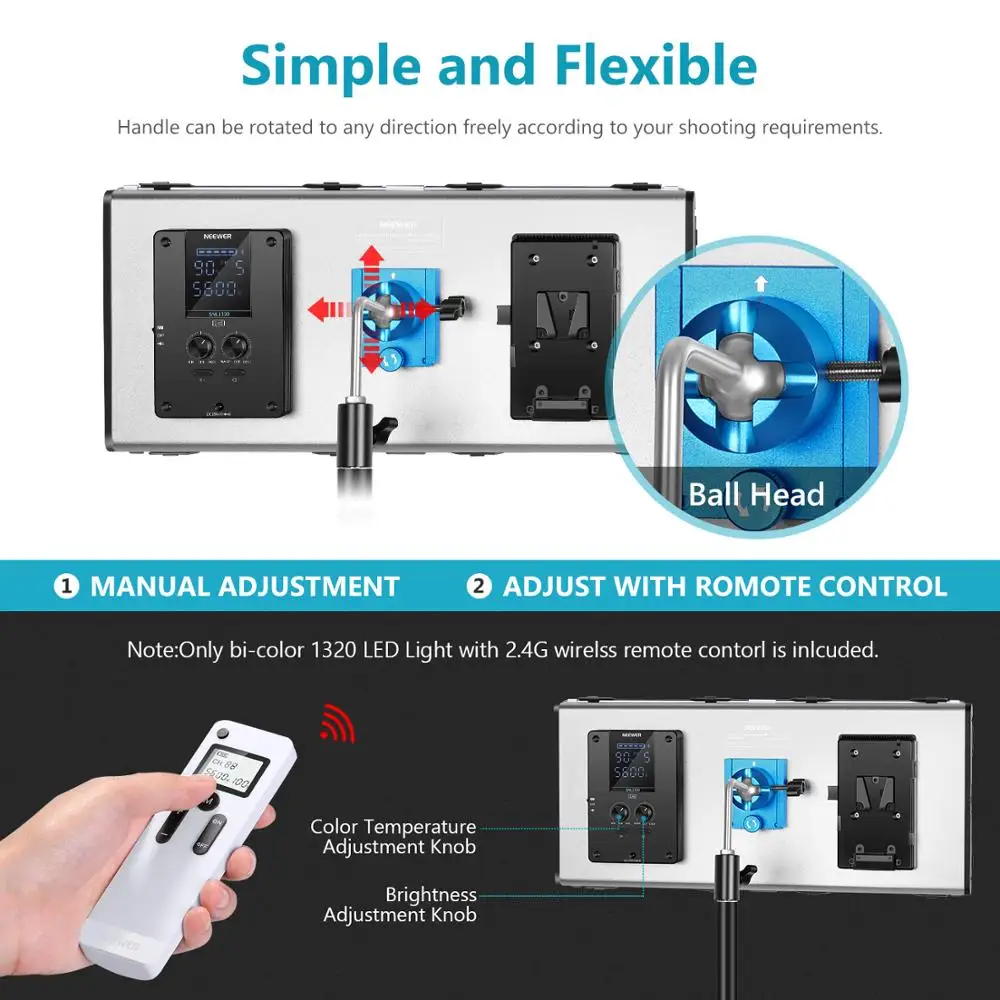 Особенности 2 отдельных ручек на задней панели для регулировки цветовой температуры от 3200K до 5600K и регулировки яркости в соответствии с вашими потребностями.