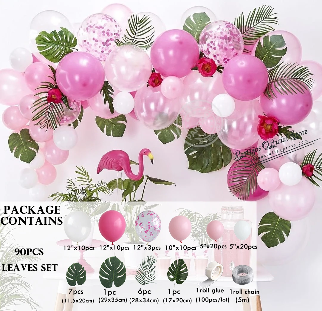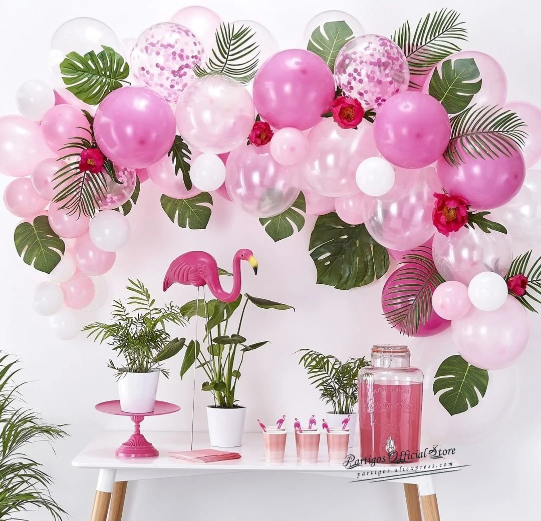 Разные розовые цепочки для самостоятельной сборки, воздушные шары фламинго, Тропический гавайский остров, шарики, гирлянды, листья монстеры, день рождения, новогодний декор