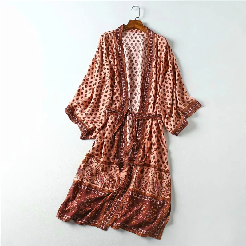 Платье-кимоно женское с цветочным принтом, Пляжное богемное с рукав...