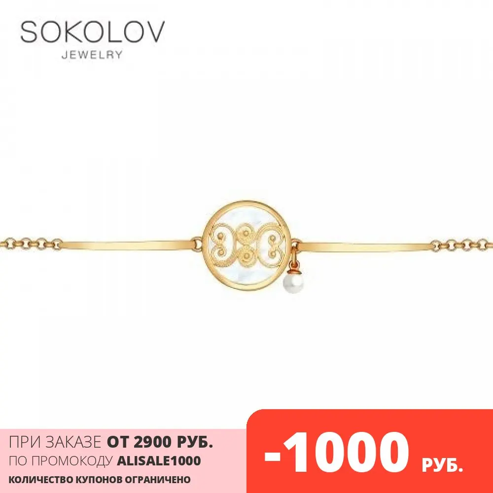 Позолоченный браслет с жемчугом и перламутром SOKOLOV, Серебро, 925, Браслеты на руку, Оригинальная продукция