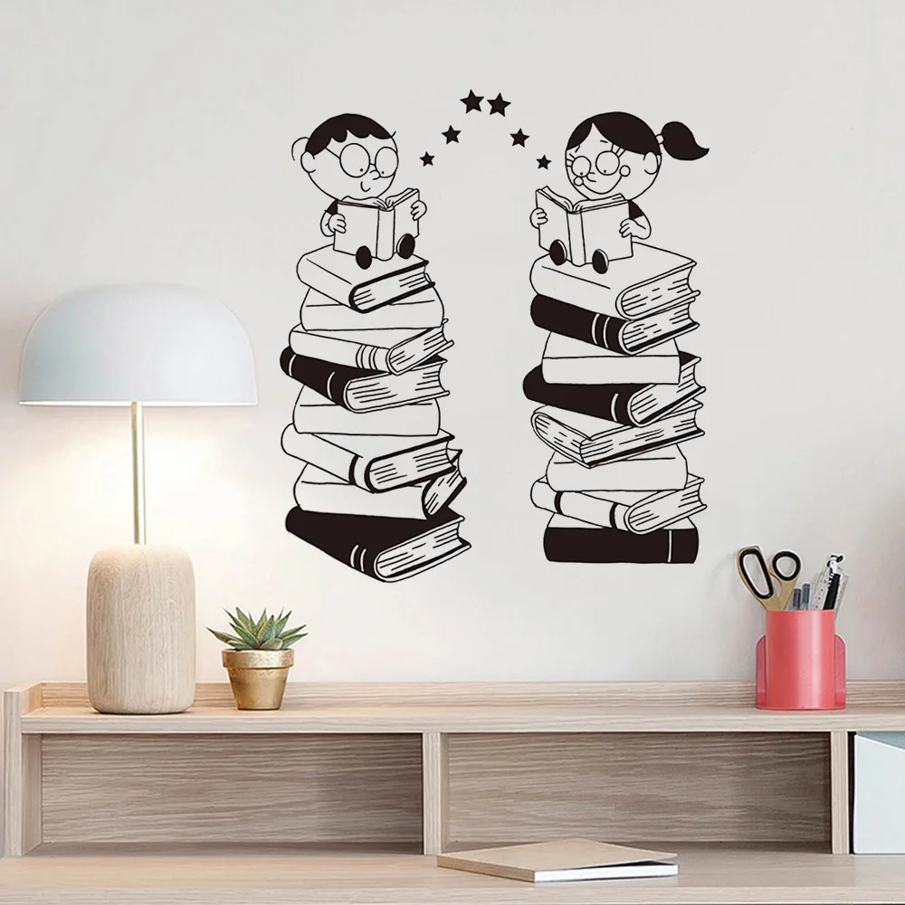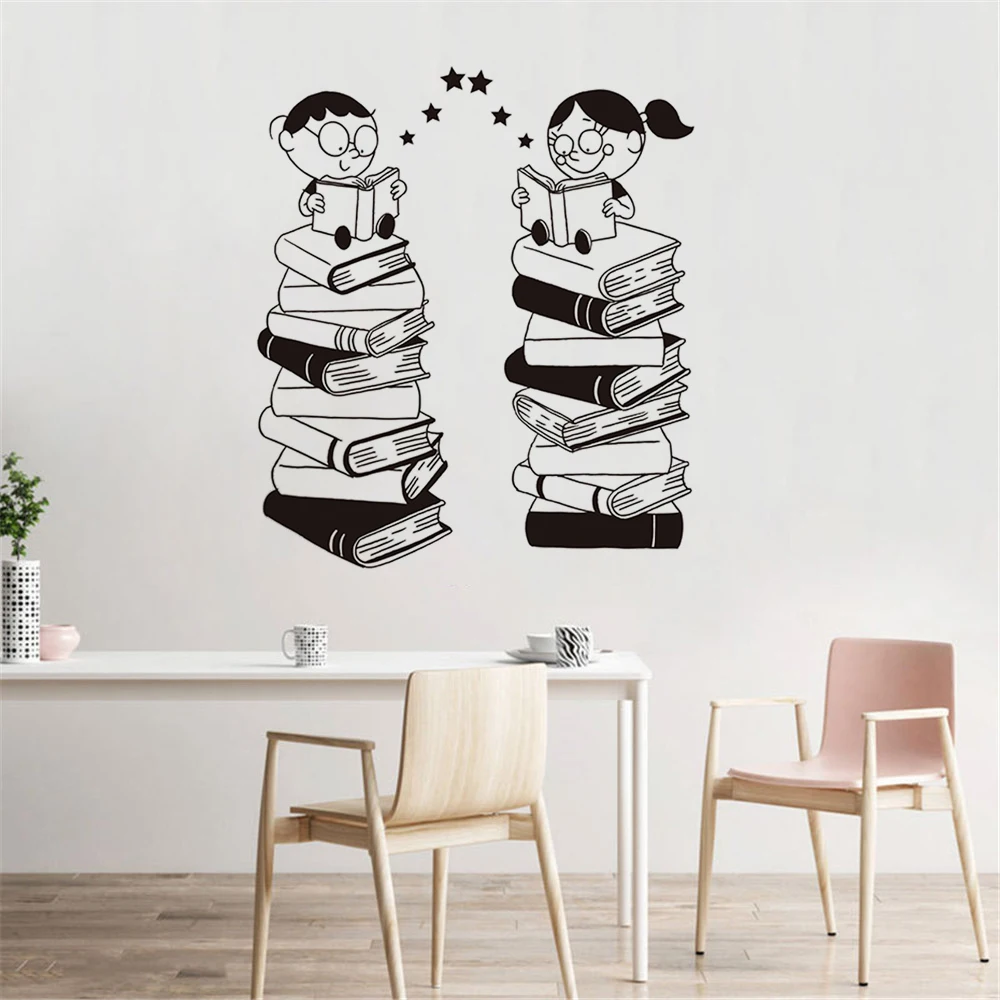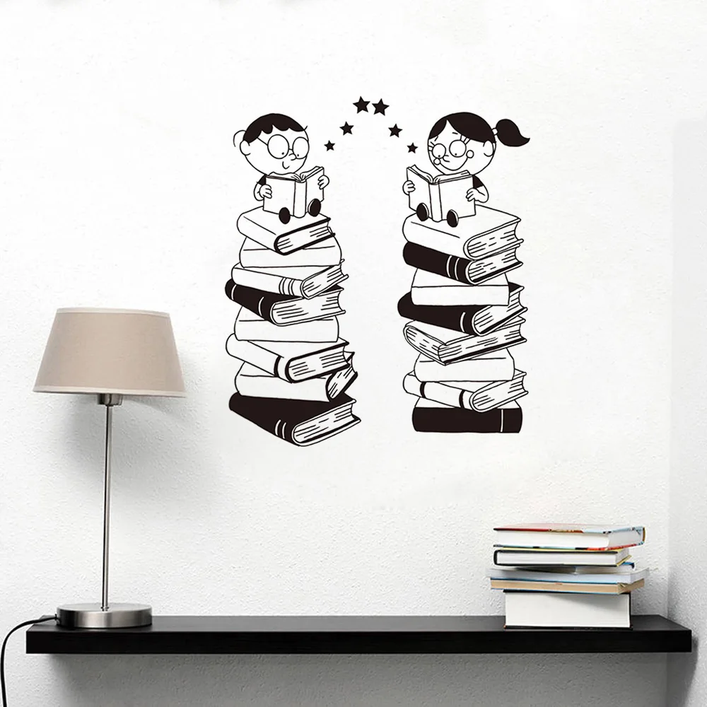 Мультфильм класс ребенок читать книжку стикер стены библиотека школа Большая книга детские настенные наклейки спальня виниловый Декор