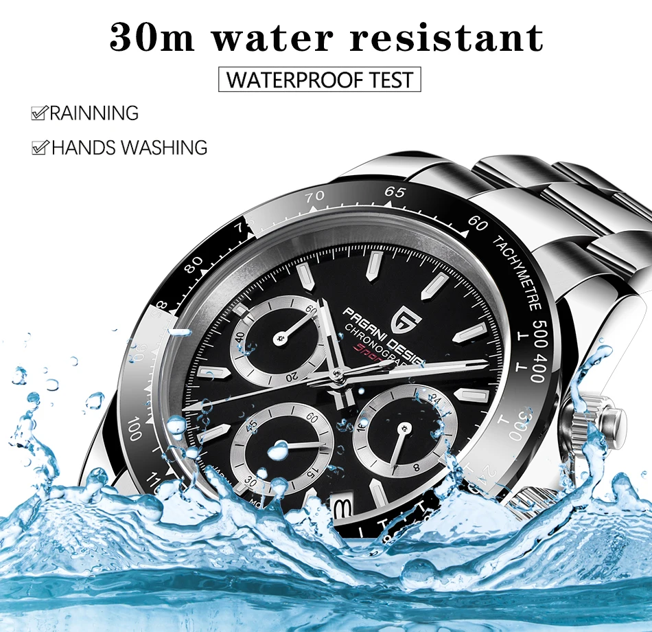 Часы наручные PAGANI Мужские кварцевые, брендовые Роскошные водонепроницаемые спортивные с хронографом, черные