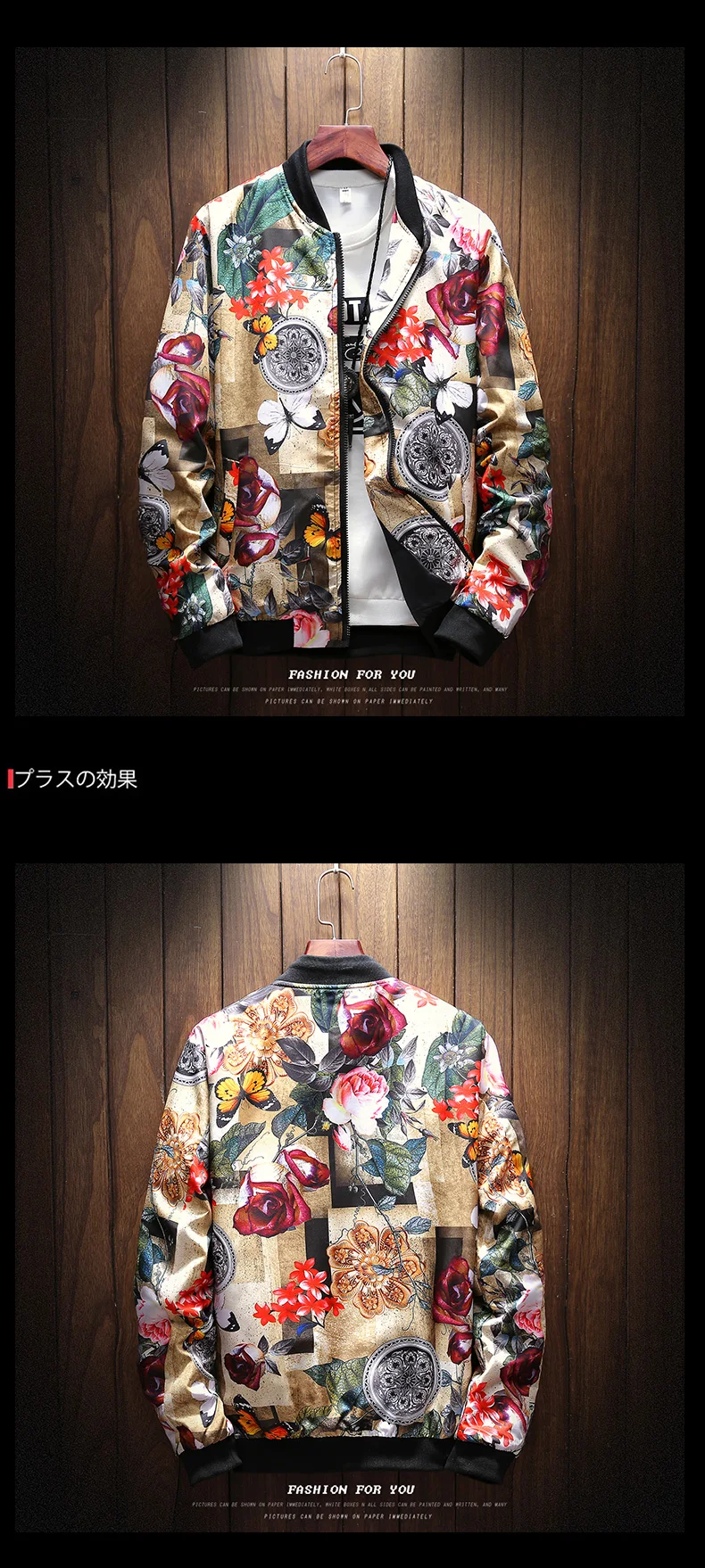 Новинка 2021, мужская повседневная куртка-бомбер с розами, 5XL