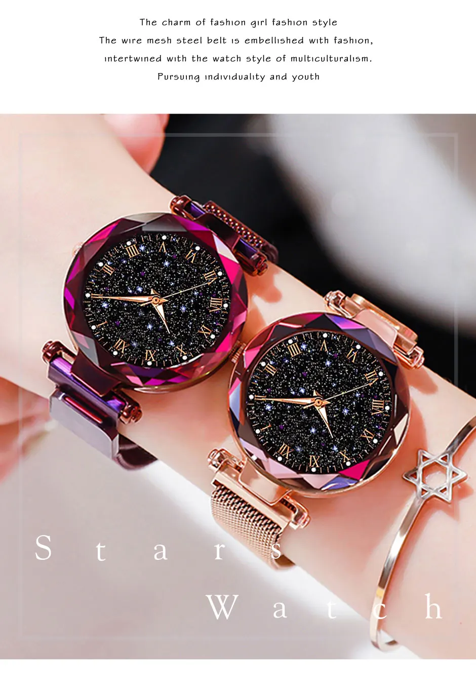 Женские кварцевые часы со звёздным небом, с магнитной пряжкой
