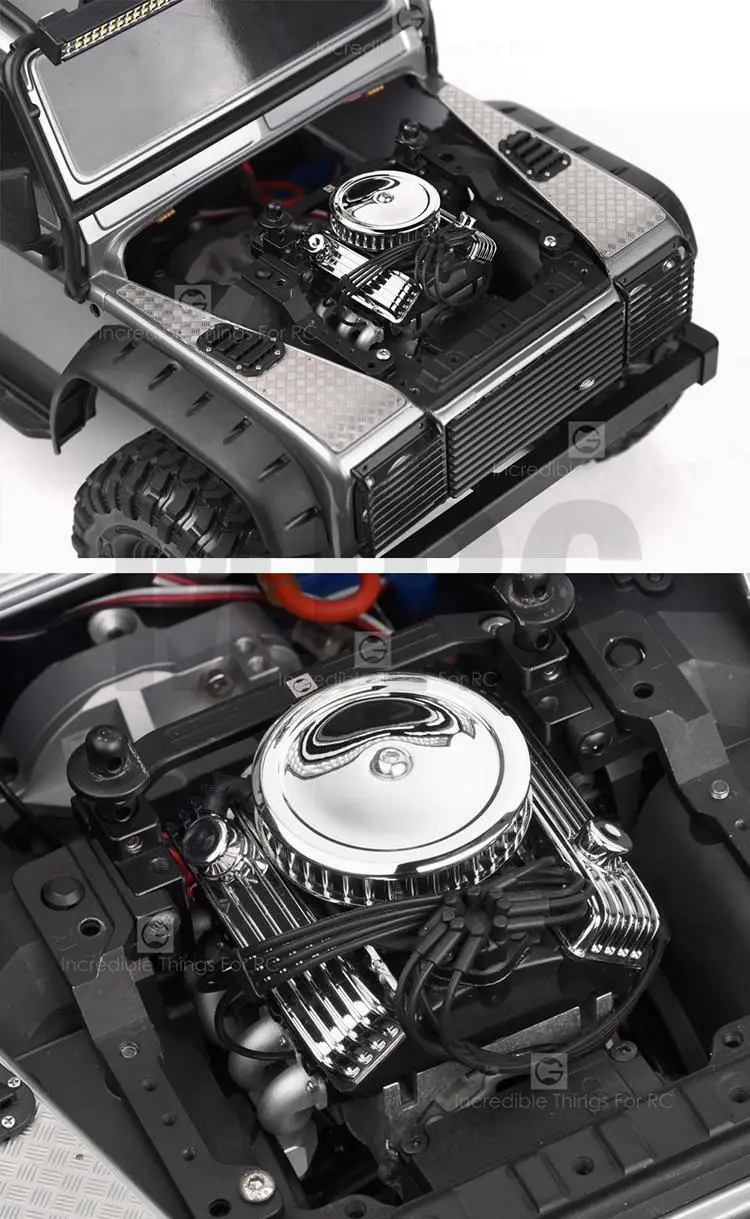Радиоуправляемый автомобиль F82 V8 с имитацией двигателя, охлаждающие вентиляторы, радиатор для 110 Rc Crawler Traxxas Trx-4 Axial Scx10 90046 Redcat Gen8 G63