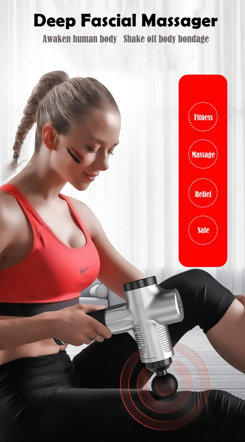 Массажный пистолет для глубоких мышц, Электрический массажер для расслабления мышц, оснащение для фитнеса, дизайн с шумоподавлением для спины для мужчин и женщин