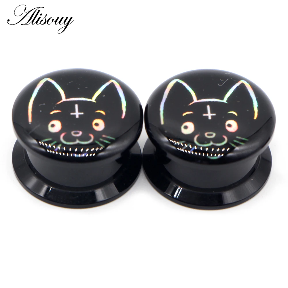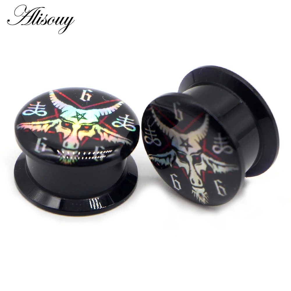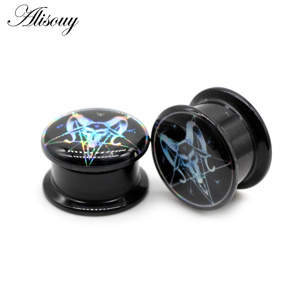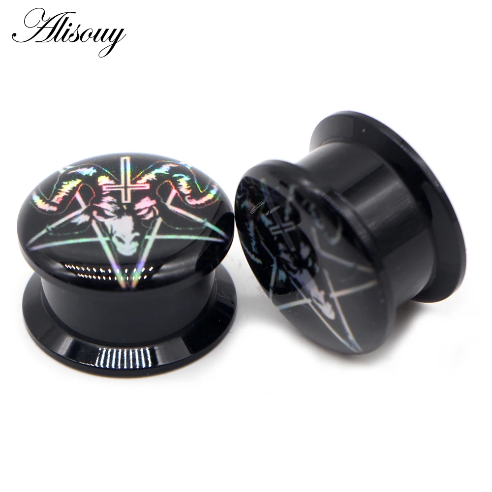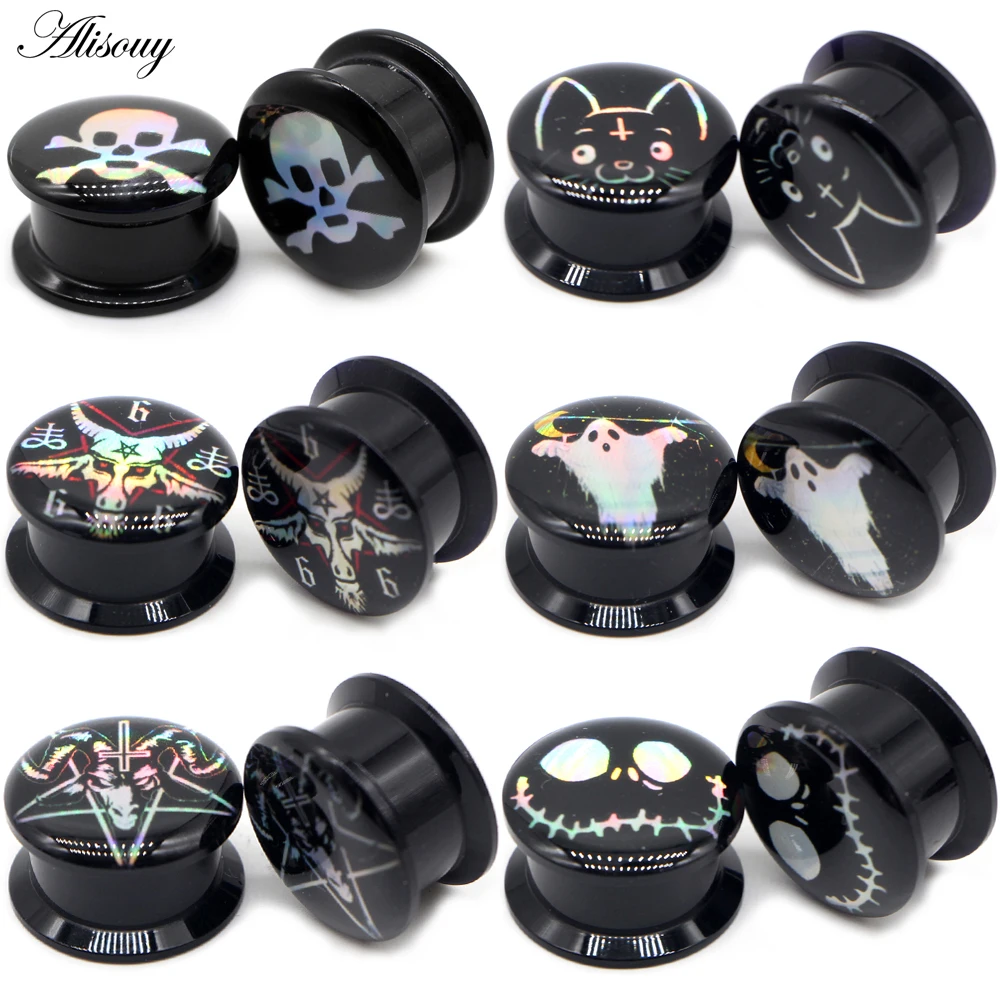 Штифты для ушей Alisouy, 2 шт., черные, акриловые, в стиле панк, с двойным разветвлением, расширители для ушей, пирсинг, украшения для тела, растяжка; Тоннель для ушей