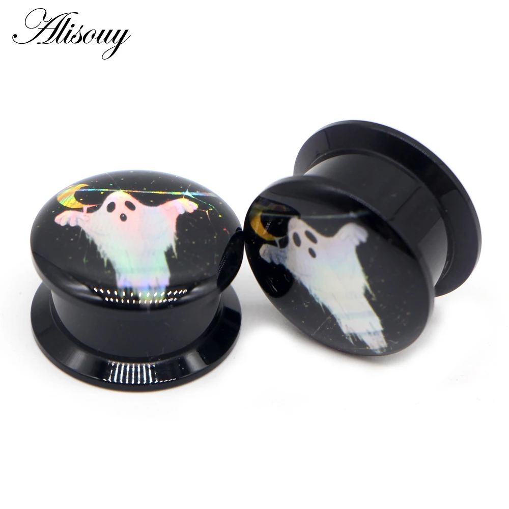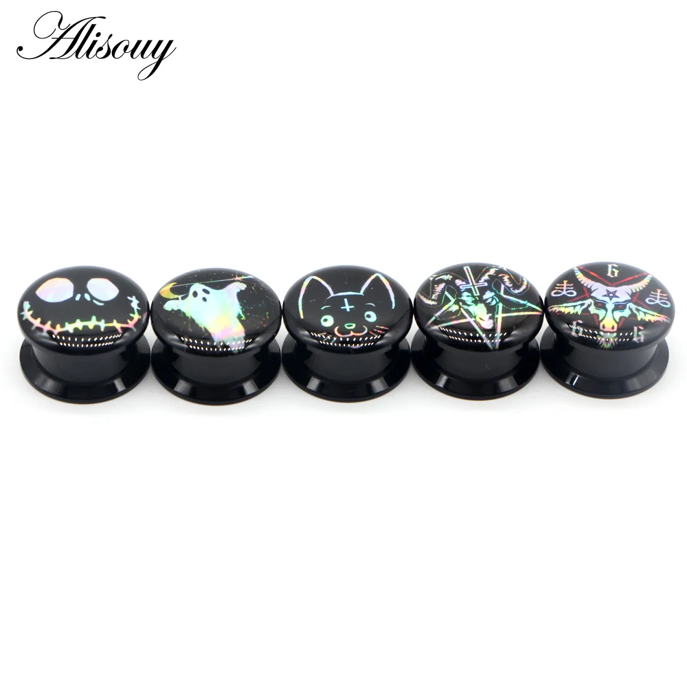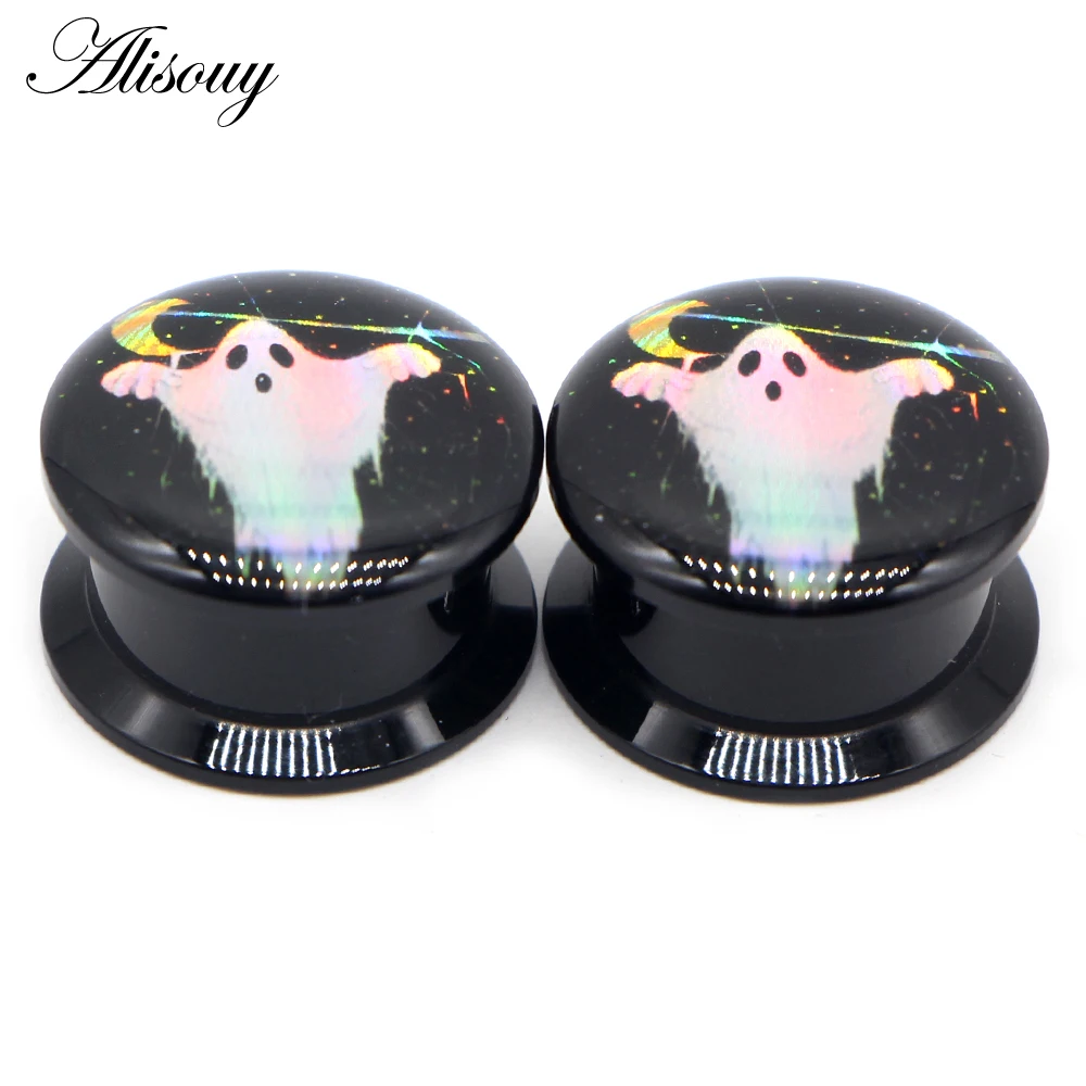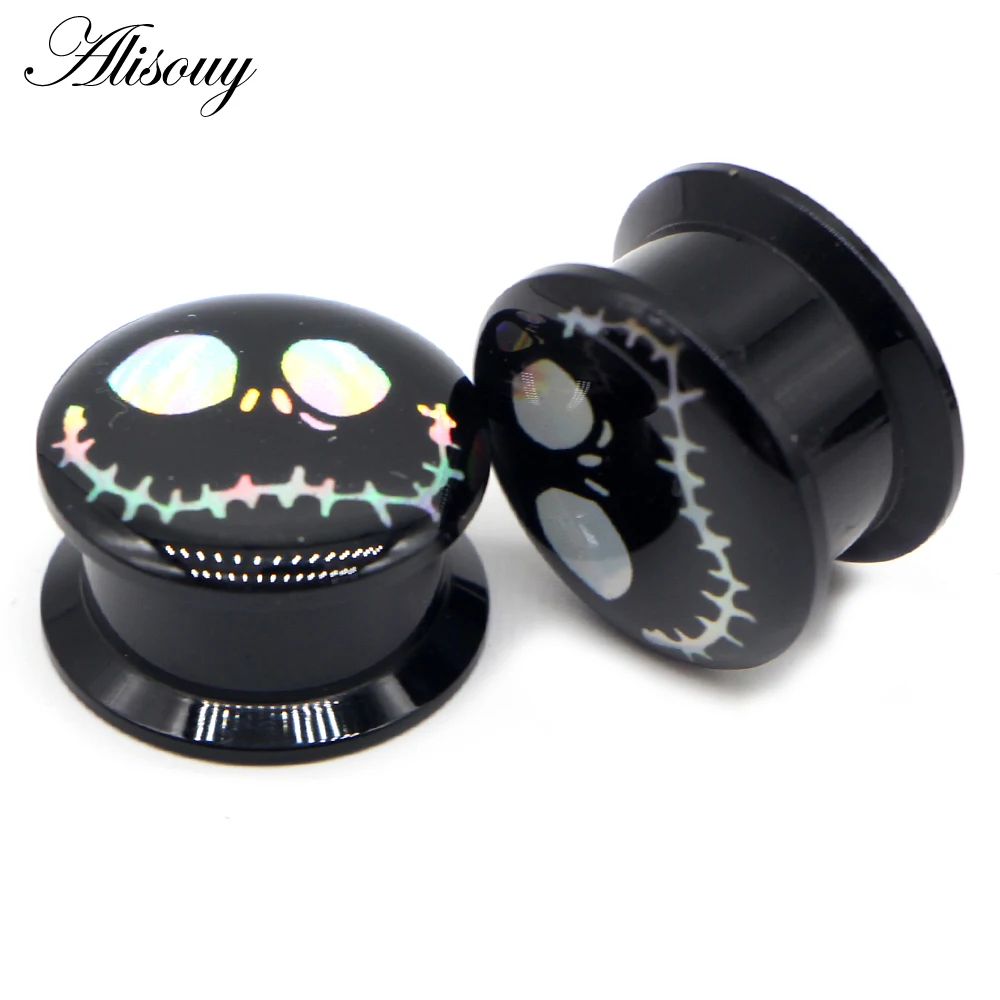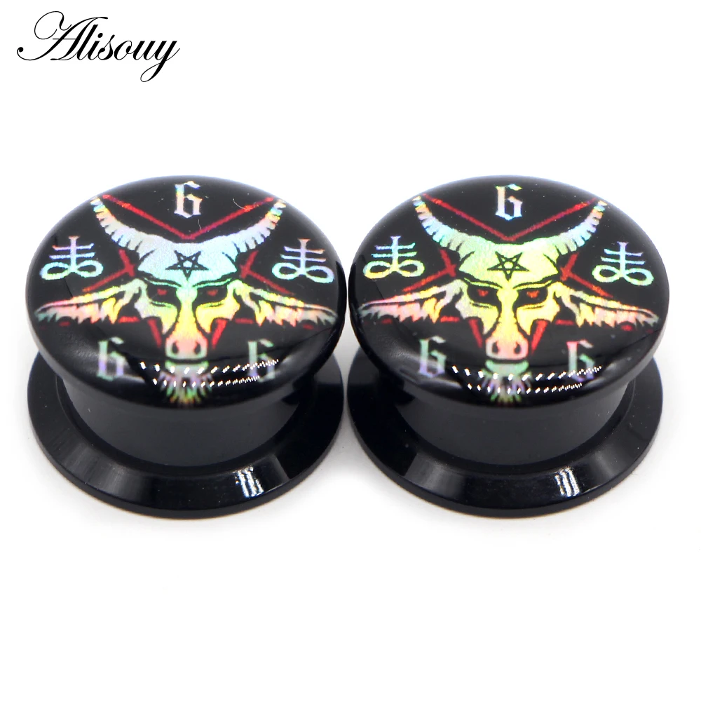 Штифты для ушей Alisouy, 2 шт., черные, акриловые, в стиле панк, с двойным разветвлением, расширители для ушей, пирсинг, украшения для тела, растяжка; Тоннель для ушей