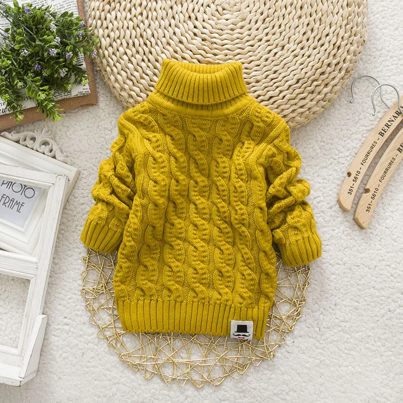 Детская однотонная трикотажная водолазка с высоким воротником, для мальчиков и девочек