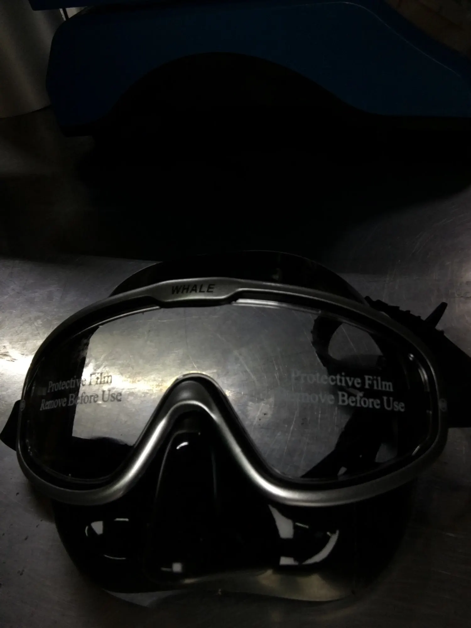 Маска маленькая, не держится на лице, поэтому протекает. Пластик, не стекло