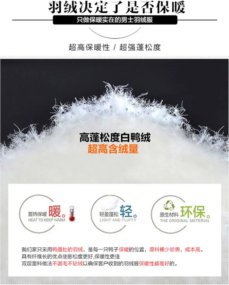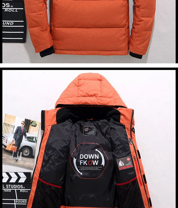 Мужские зимние куртки с белым утиным пухом, теплая парка с капюшоно...