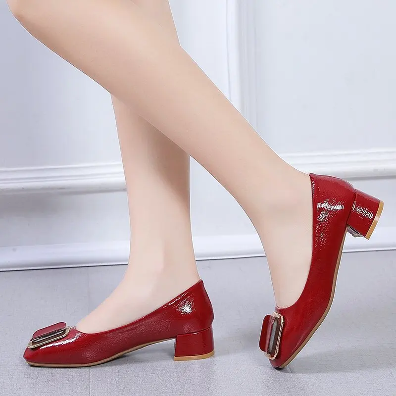 Туфли женские из лакированной кожи, на среднем каблуке, с ремешком ...