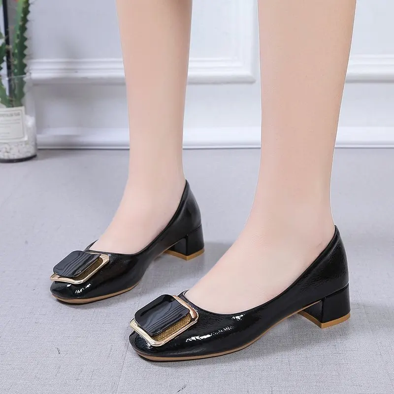 Размера плюс 41 Офисная Женская обувь 3 см женские туфли-лодочки на квадратном каблуке модельные туфли с металлической отделкой женская обувь 8246N