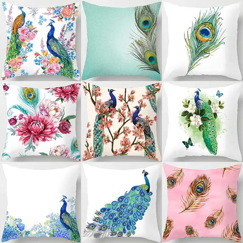 Узоров в виде перьев павлина, Декоративная Подушка Наволочка Чехол для подушки из полиэстера подушка для дивана украшения мультипликационным мотивом 40826