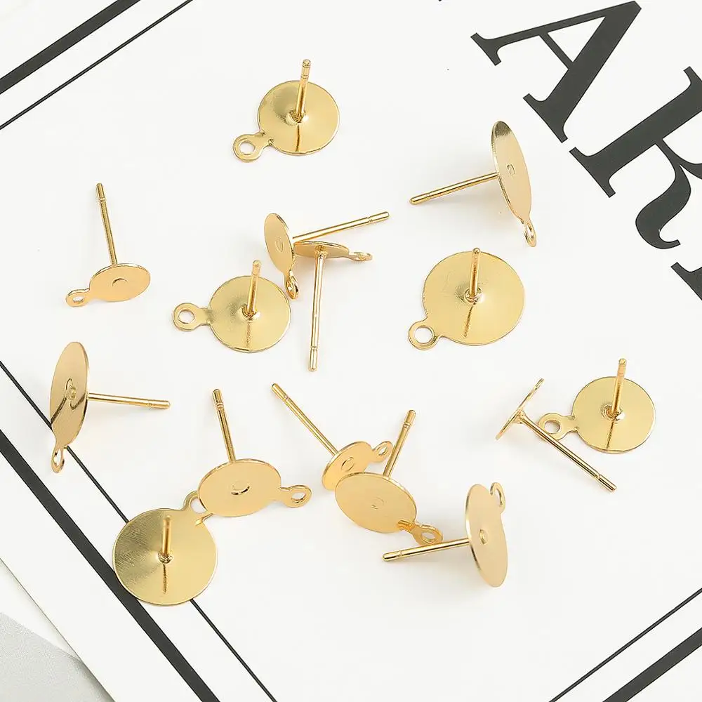 Основа для кабошона, позолоченная, 18 карат, 10 шт., 6810 мм, пустая Сережка-гвоздик, для изготовления ювелирных изделий