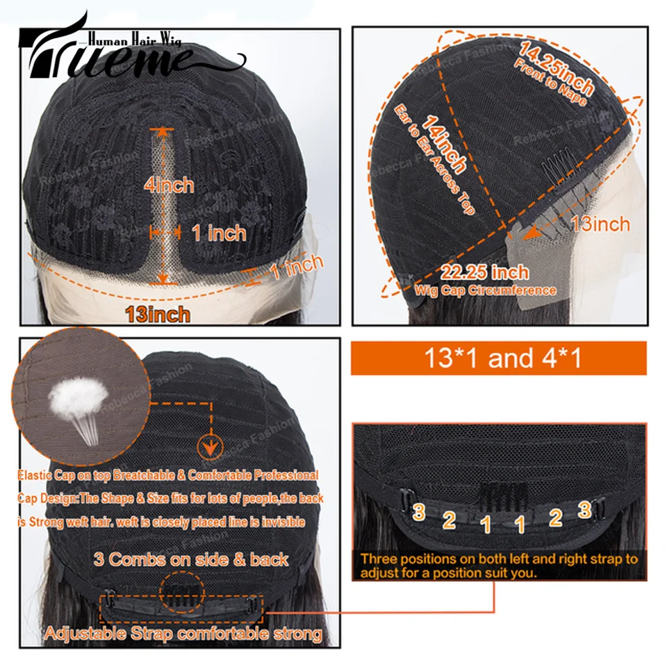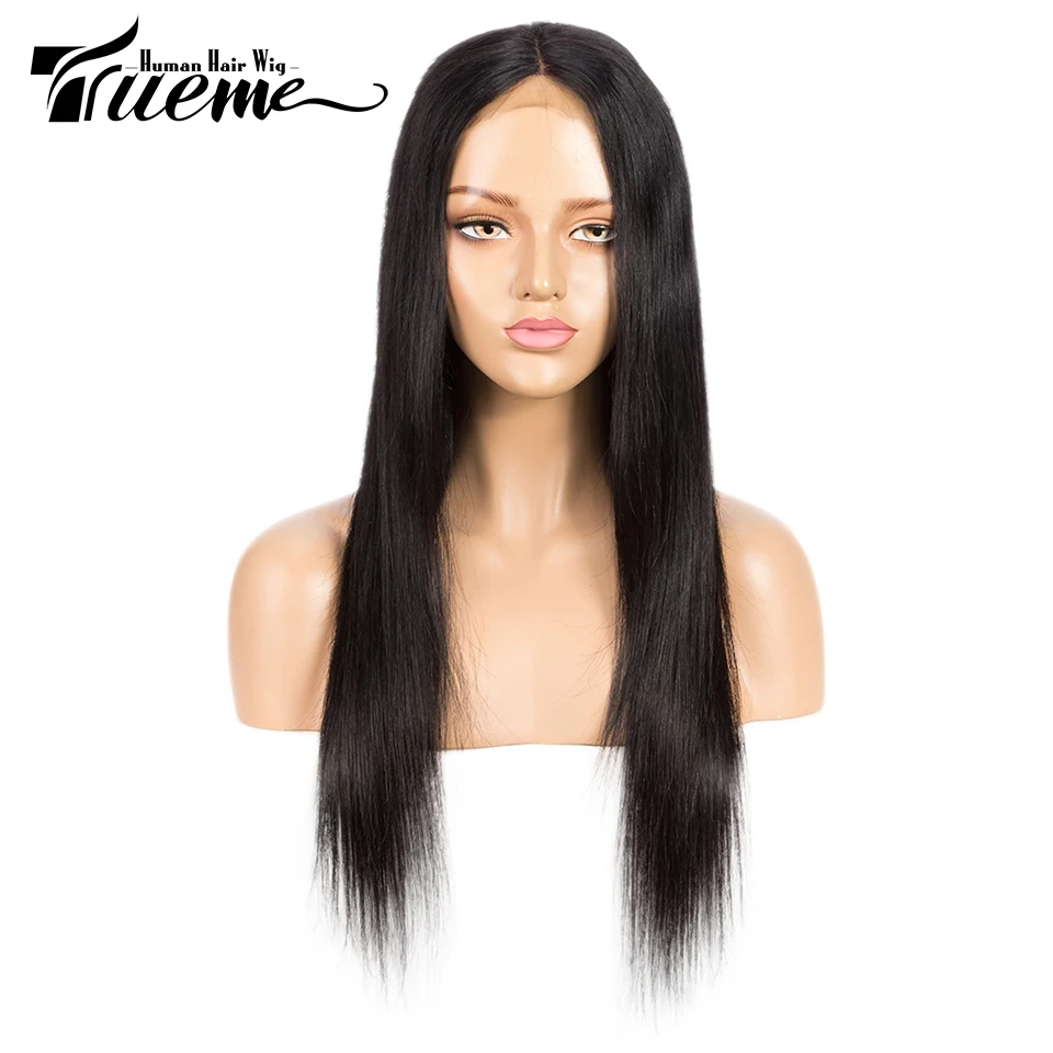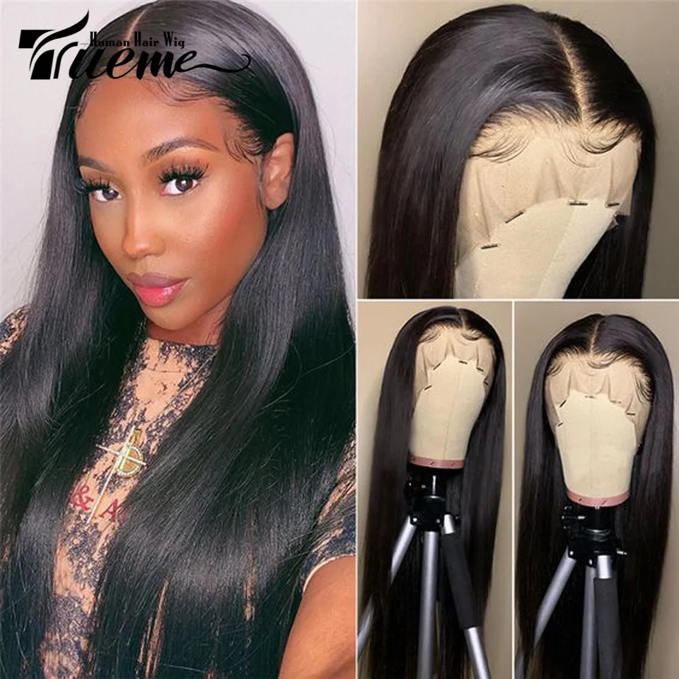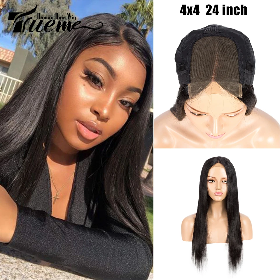 Парик из натуральных волос Trueme 4x4, бразильские прямые с детскими волосами, с кружевной передней частью 13x4x1