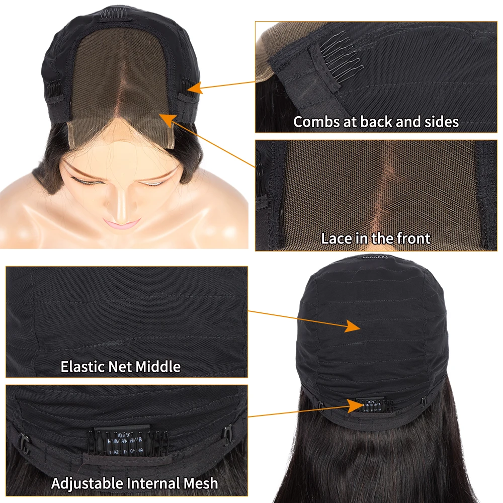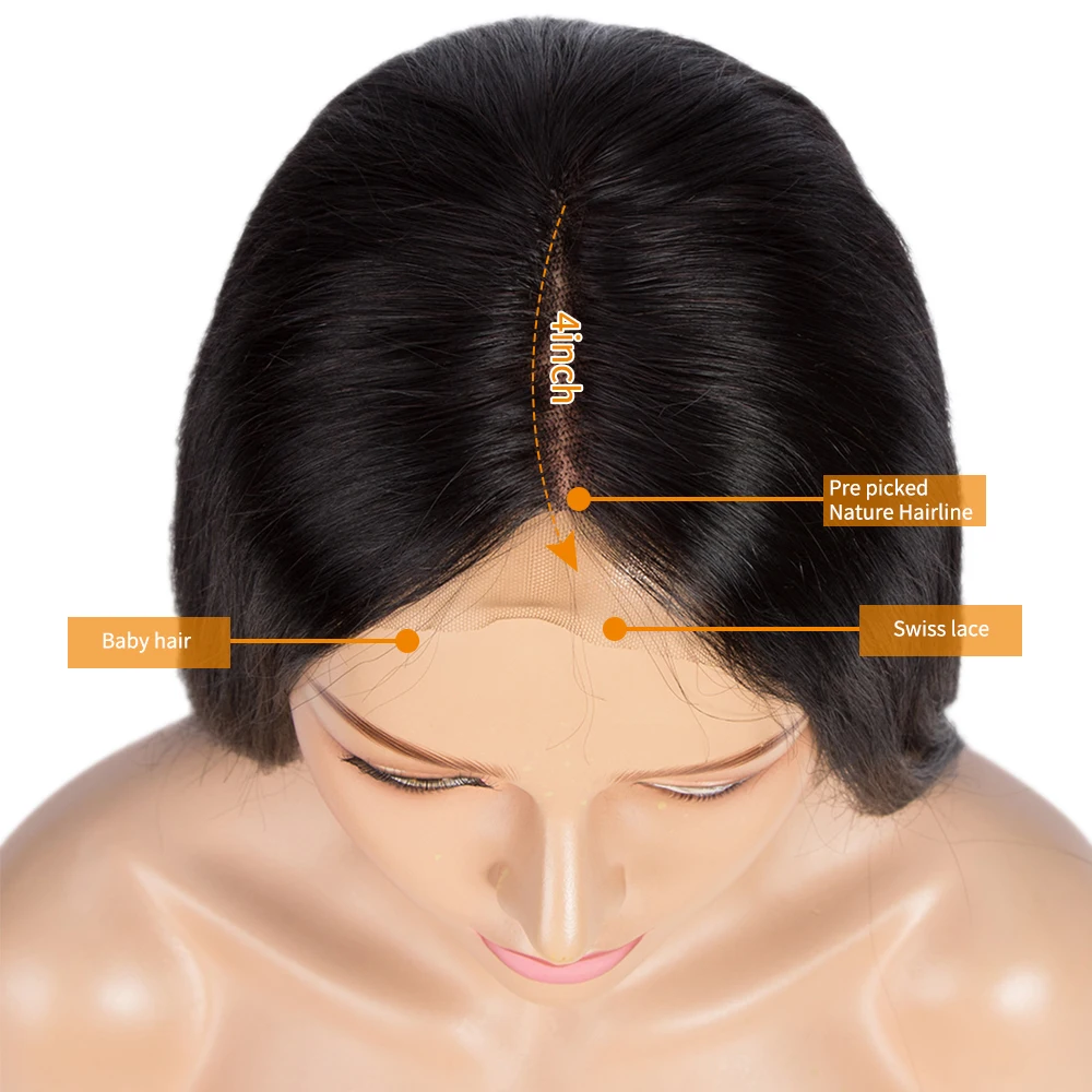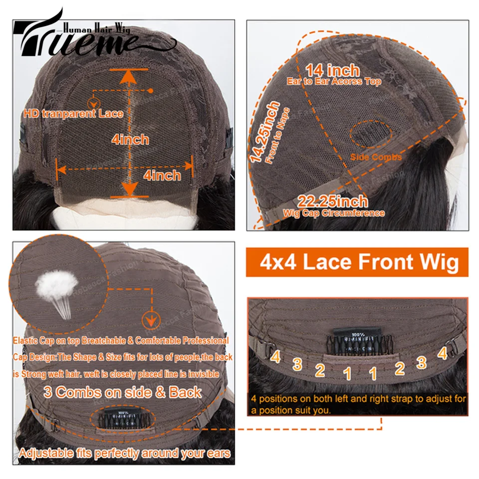 Парик из натуральных волос Trueme 4x4, бразильские прямые с детскими волосами, с кружевной передней частью 13x4x1