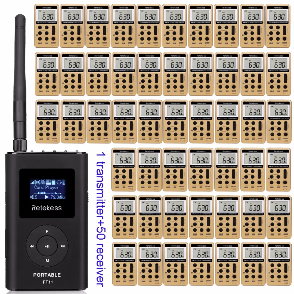 FM-передатчик 1 FT11 0,3 Вт + 50 FM-радиоприемников V112, беспроводная система экскурсоводства, система перевода церковных встреч