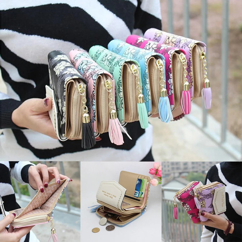 Модный женский кошелек, кошельки, держатель для карт, монеты на молнии с кисточками и сердцем, Женский кошелек, сумки, Дамский короткий кошелек, карман для девушек