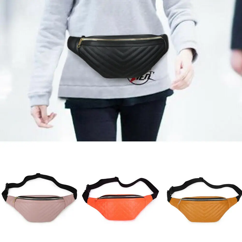 Новые женские модные поясные сумки, однотонные классические полосатые спортивные Поясные Сумки из искусственной кожи, нагрудная сумка