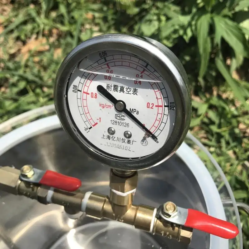 1. Камера из нержавеющей стали с сварными ручками для долгосрочного воздухонепроницаемости. (Типичные ручки через отверстие могут привести к утечке после длительной эксплуатации)2. Наша камера имеет закругленный край в верхней части, для защиты силиконовой прокладки.3. Вакуумный датчик собирается на отдельном порту, так что чтение остается точным даже во время откачки/вентиляции камеры.4. Измерительные показания как в инхг, так и в МПа.5. Все наборы тестируются в течение 24 часов перед упаковкой. (Утечки менее 2,0 дюймы 24 часа в сутки)6. Двусторонняя гнущаяся вакуумная прокладка для лучшей долговечности и надежности.7. Прокладка химически устойчива к Бутану и другим растворителям.8,1/2 "толщина поликарбонатная крышка-светильник-вес, но 30x сильнее, чем акрила.9. Сильный эластичный пищевой силиконовый вакуумный шланг может легко подключаться/отключаться с насосом/камерой.10.50um воздушный фильтр на вентиляционном клапане для уменьшения потока воздуха и предотвращения попадания пыли/порошка в камеру.11. Простота установки и низкая стоимость обслуживания: камера может быть собрана в течение 5 минут.12. Пожалуйста, обратите внимание, что посылка включает только камеру.