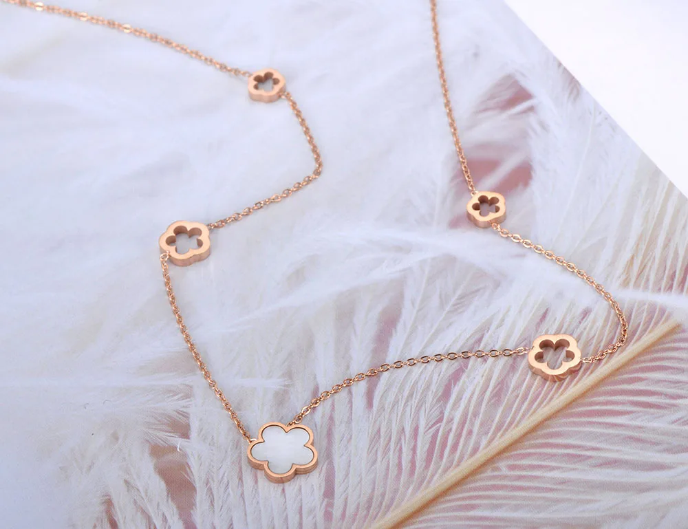 YiKLN оригинальный дизайн, титановая сталь, 5 шт., цветочный Шарм, подвеска, ювелирное изделие, розовое золото, оболочка, свадебные ожерелья для женщин, подарок YN19100