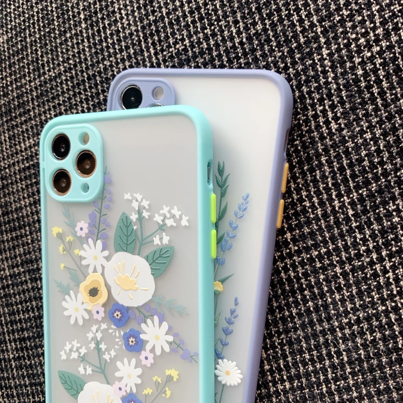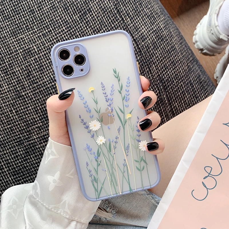 Чехол для телефона iPhone 11 12 Pro XS MAX Mini X XR 7 8 Plus SE 2, прозрачный матовый Ударопрочный силиконовый чехол с ромашками, цветами, лавандой
