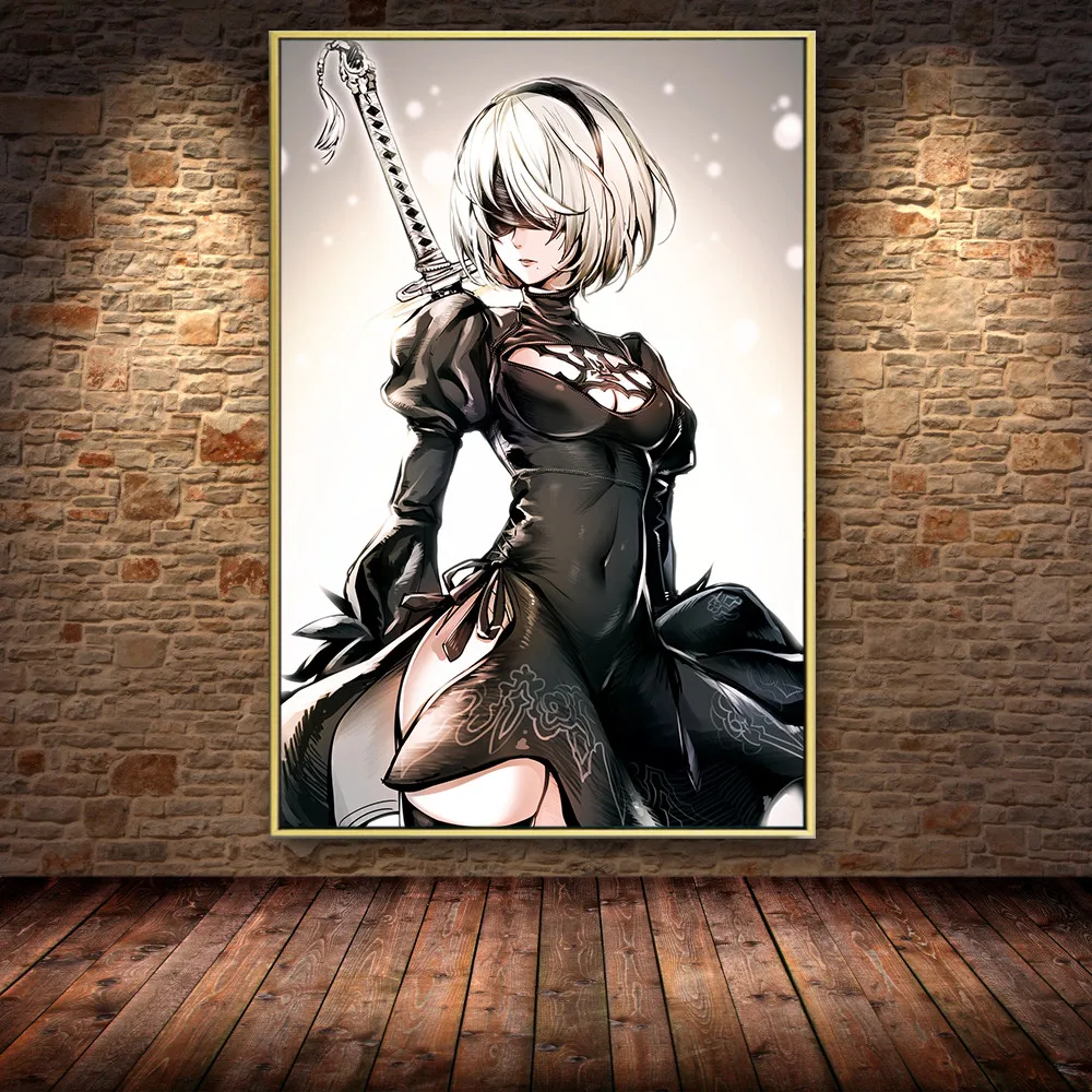 Картина Game of NieR:Automata 2B Girl, холст, постеры, принты, настенные картины для игровой комнаты