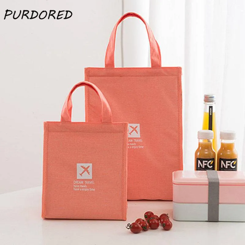 Ланч-бокс PURDORED для женщин, однотонная Термосумка для пикника, изоляционная сумка для бенто, дорожный органайзер для еды для студентов, 1 шт.