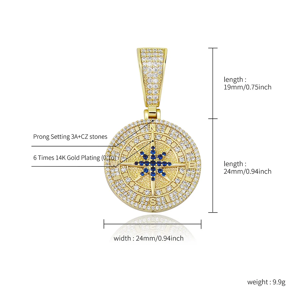 Кулон с компасом topgrill Z в стиле хип-хоп, кулон со сверкающим фианитом и теннисной цепью в стиле хип-хоп, Модная бижутерия, подарок для мужчин и женщин
