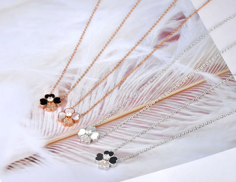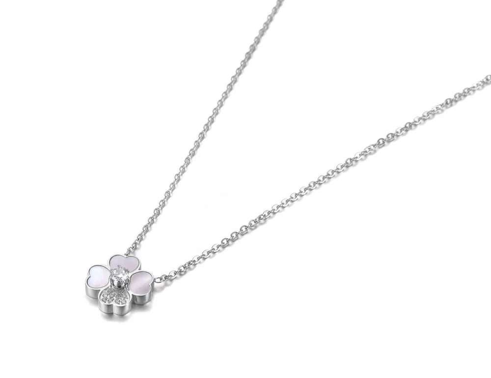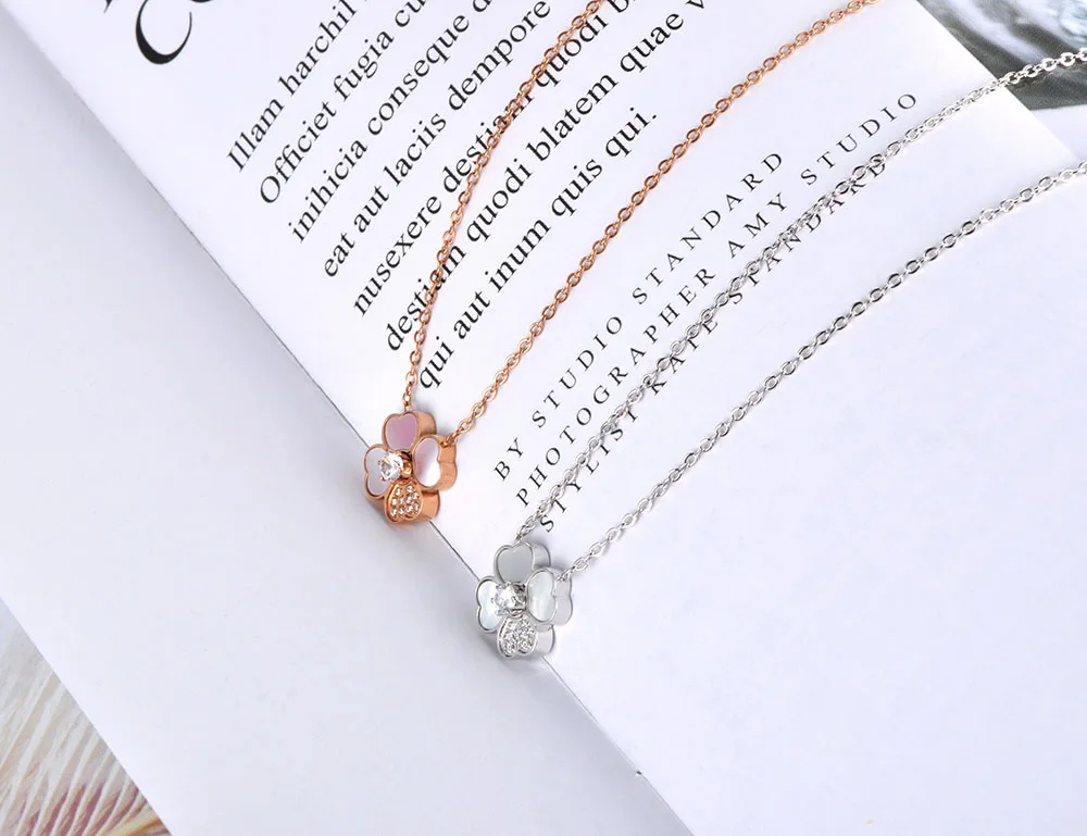 Модное ожерелье YiKLN из титановой стали с подвеской в виде сердца и цветка, ожерелье с кулоном в виде хрустальной ракушки с кубическим цирконием, свадебное ожерелье для женщин YN19088