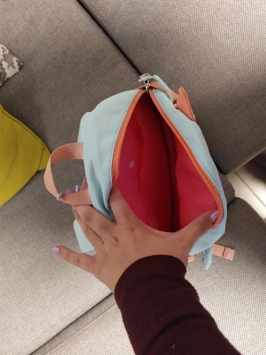 Рюкзак очень качественный, хорошо сшит, цвет очень приятный. Есть застежка между лямками, чтобы не сваливался с плеч ребенка. Никакого постороннего запаха, ребенку очень понравился.