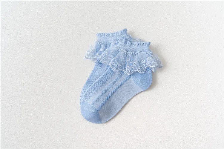 Носки хлопковые короткие, белые, розовые, голубые, сетчатые, с оборками, для маленьких девочек, 10 парЛот