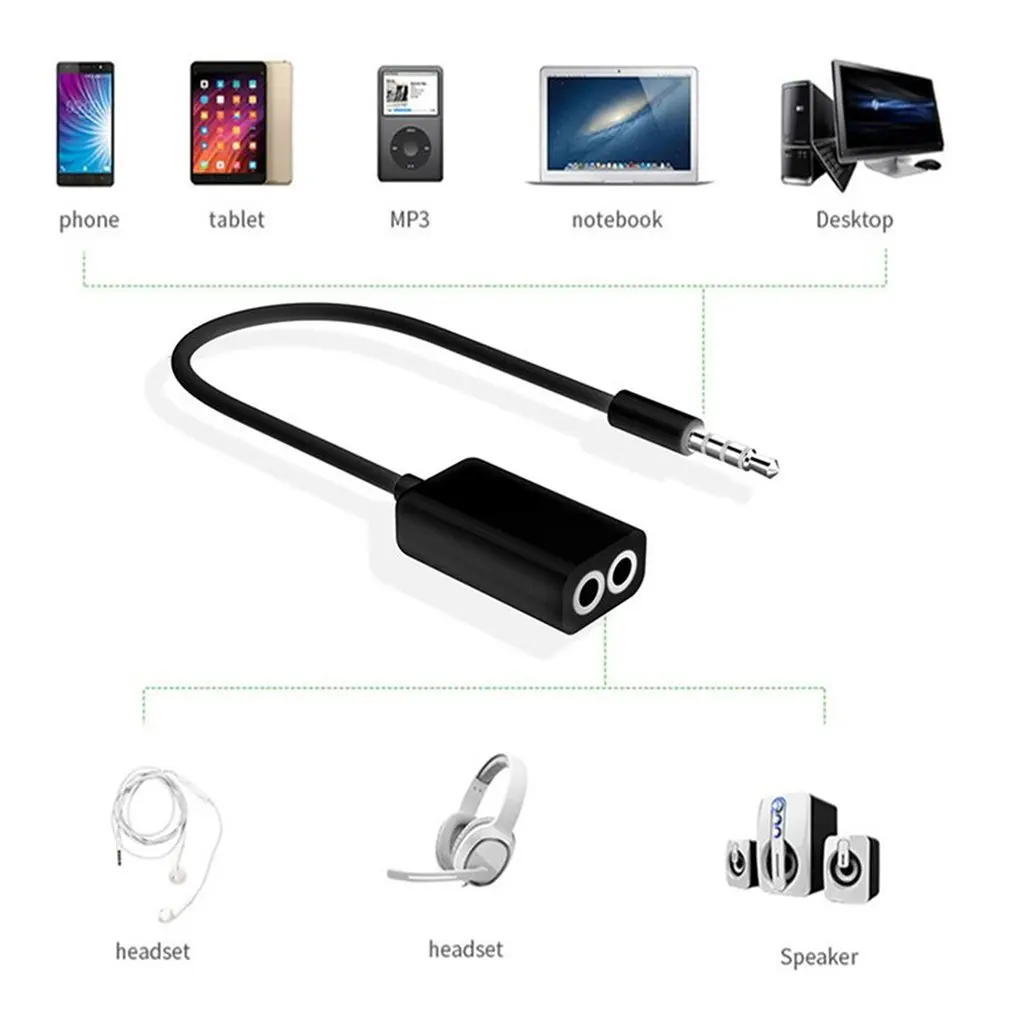 1 шт., двойной Разветвитель для наушников, 3,5 мм