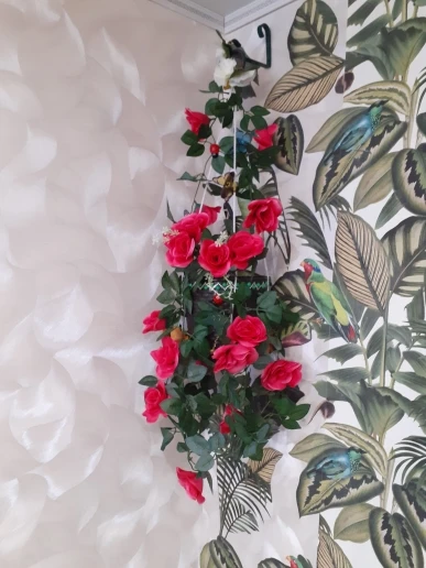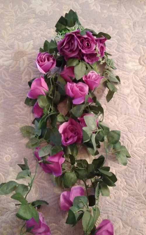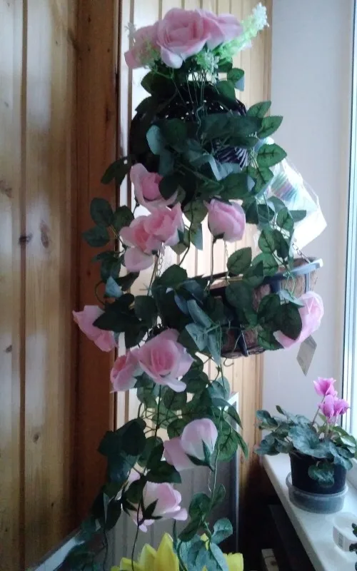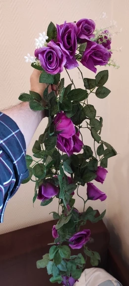 Заказ пришел довольно быстро. Но они не похожи на то, что заказывалось. Чтобы выглядело как на картинке, нужно заказывать минимум четыре штуки. Но дело даже не в этом. Сами розочки на лиане выглядят очень дешево, они ни разу не похожи на картинку. Денег это своих не стоит. Заказывать больше не буду - деньги на ветер.