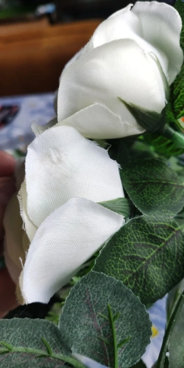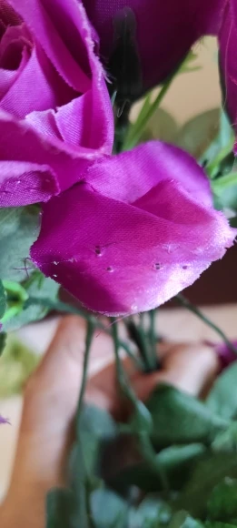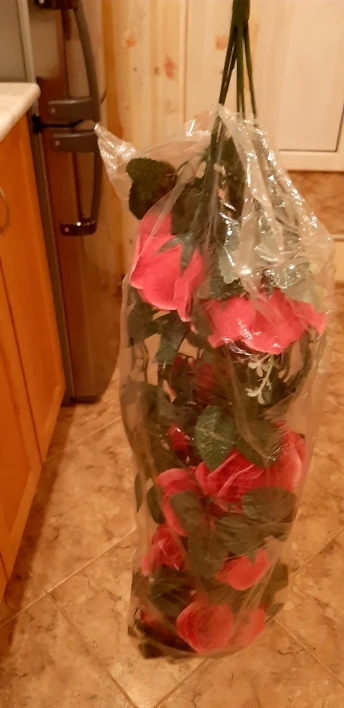 цветы красивые,букет пышный.смотрится очень натурально. конечно,приходит помятый,но подержишь над паром и он расправляется. очень довольна покупкой.