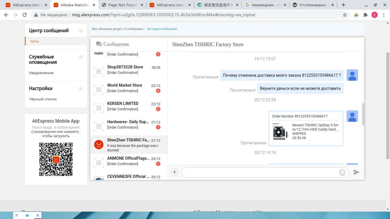 После оплаты заказа недели через две при отслеживании посылки выдало сообщение, что доставка товара отменена, продавец на мои запросы не реагировал, открыл спор, деньги пока не вернули. Почему отменили доставку так и не обьяснили