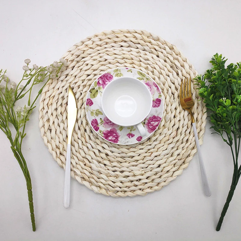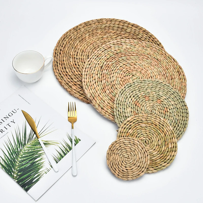 Круглый соломенный коврик ручной работы, изоляционная подставка для обеденного стола, дренажный коврик для чаши, кухонные украшения, аксессуары