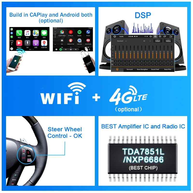 TDA7851L является лучшим амплитудным IC на рынке в настоящее время. Лучше, чем 7388 и все остальные. Качество звука автомобиля лучше, чем у других типов радио. Если вам нужно лучшее качество звука, мы предлагаем вам также выбрать функцию DSP, DSP-это система цифрового усилителя, она предлагает лучшее качество звука.