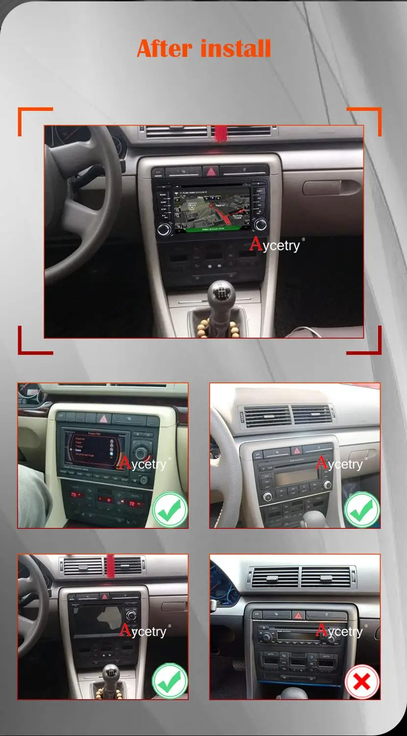 Зеленая марка автомобиля может установить наше радио. Красный знак размер радио автомобиля отличается от нашего продукта и не может быть установлен. Если вы все еще не уверены, пожалуйста, оставьте сообщение нашей службе поддержки клиентов, и они помогут вам.
