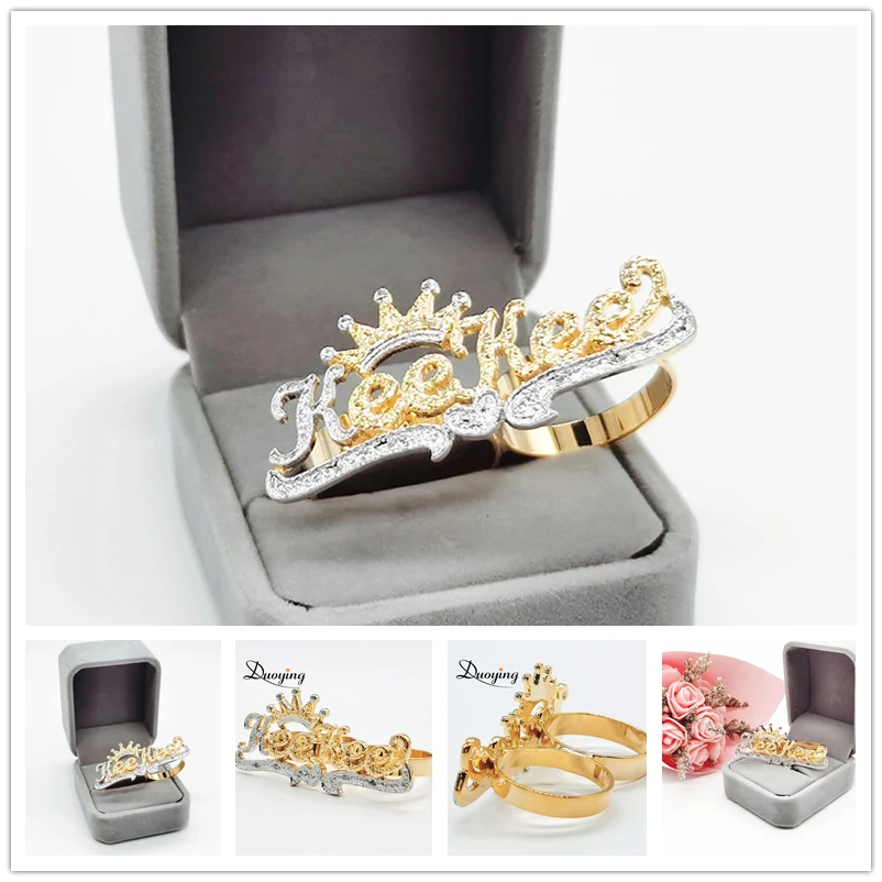 Duoying 3D двухцветное позолоченное кольцо с номером мужское кольцо на заказ кольцо с цирконием персонализированные кольца на заказ ювелирные изделия подарки