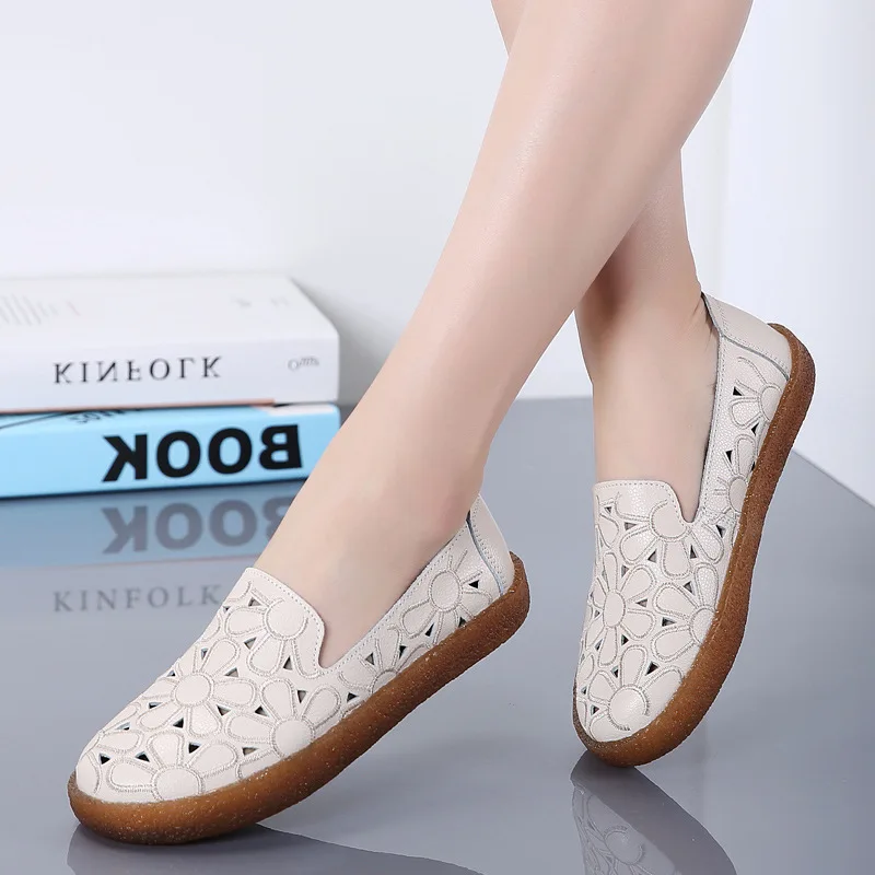 Туфли женские из натуральной кожи, на плоской подошве, 2022 см