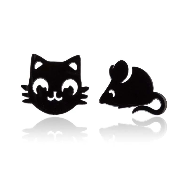 Серьги-гвоздики в виде кошки из нержавеющей стали