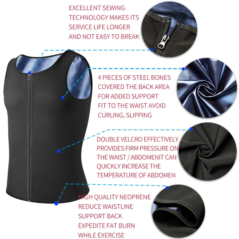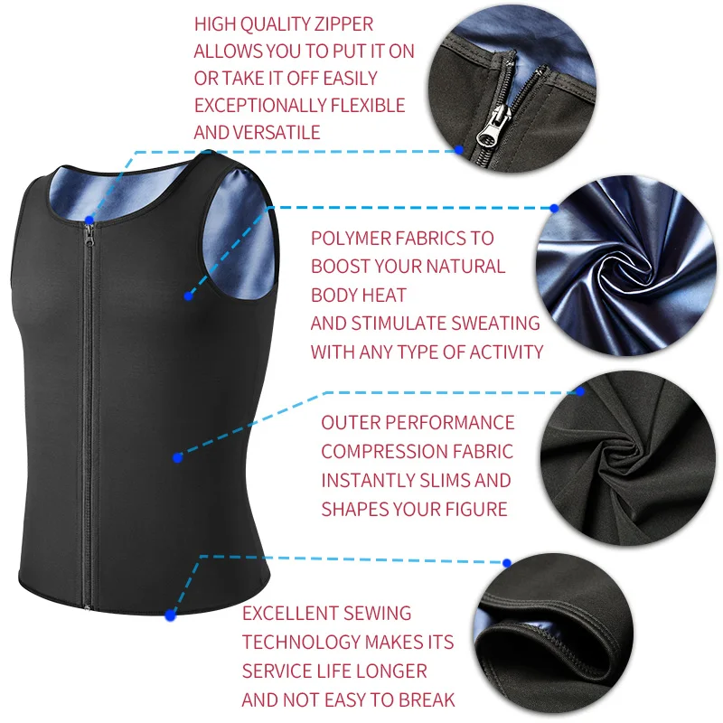 Цвет: черный Размер: S,M,L,XL,2XL,3XL Материал: Корпус: полиэстер 100%; Подкладка: Neoprene100 % Ощущение: невероятно удобный светильник Внутренний слой: термогенная полимерная ткань повышает температуру сердечника Местоположение склада: Китай, США Двухслойный дизайн Фабри: Внутренняя термогенная полимерная ткань увеличивает температуру вашего ядра, чтобы повысить потоотделение. Внешняя компрессионная ткань мгновенно скользит и формирует вашу фигуру. Дизайн застежки-молнии отлично подходит для удобства надевания или выключения. Продвинутый полимерный материал: Этот мужской формирователь для тела с жилеткой сочетает в себе эксклюзивную смесь компрессионных и полимерных тканей для повышения тепла вашего естественного тела и стимуляции потоотделения с любым видом деятельности. Надев этот жилет suana во время работы или во время ежедневной деятельности, создает горячую сауну. Быстро сохнет и нет запаха: полимерный материал отталкивает влагу, чтобы быстро высохнуть и оставаться свежим, так что вы не будете чувствовать себя влажным от избыточного потоотделения. По сравнению с неопреновыми альтернативами, этот топ не пахнет, быстрее сохнет, невероятно удобный светильник, его можно стирать в стиральной машине! Комфорт и универсальность: Для мужчин впитывает пот и платье-майка на бретелях была разработана таким образом, что это невероятно светильник и комфортная в носке даже в течение длительного времени. Он свободно перемещается с вашим телом во время тренировок в тренажерном зале или на работе. Модель с топом на бретельках, которую вы можете носить под одеждой, полностью скрыта, а также просто носить ее отдельно.