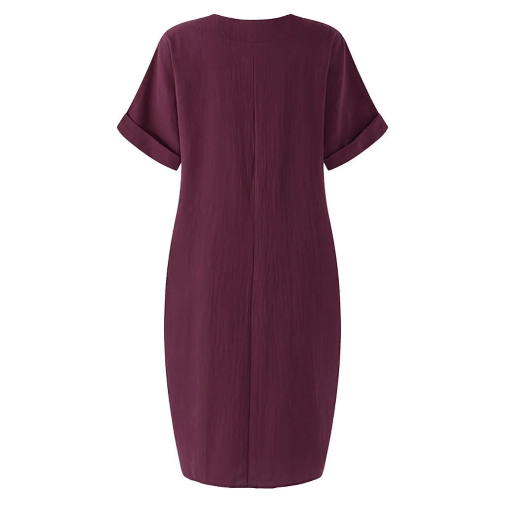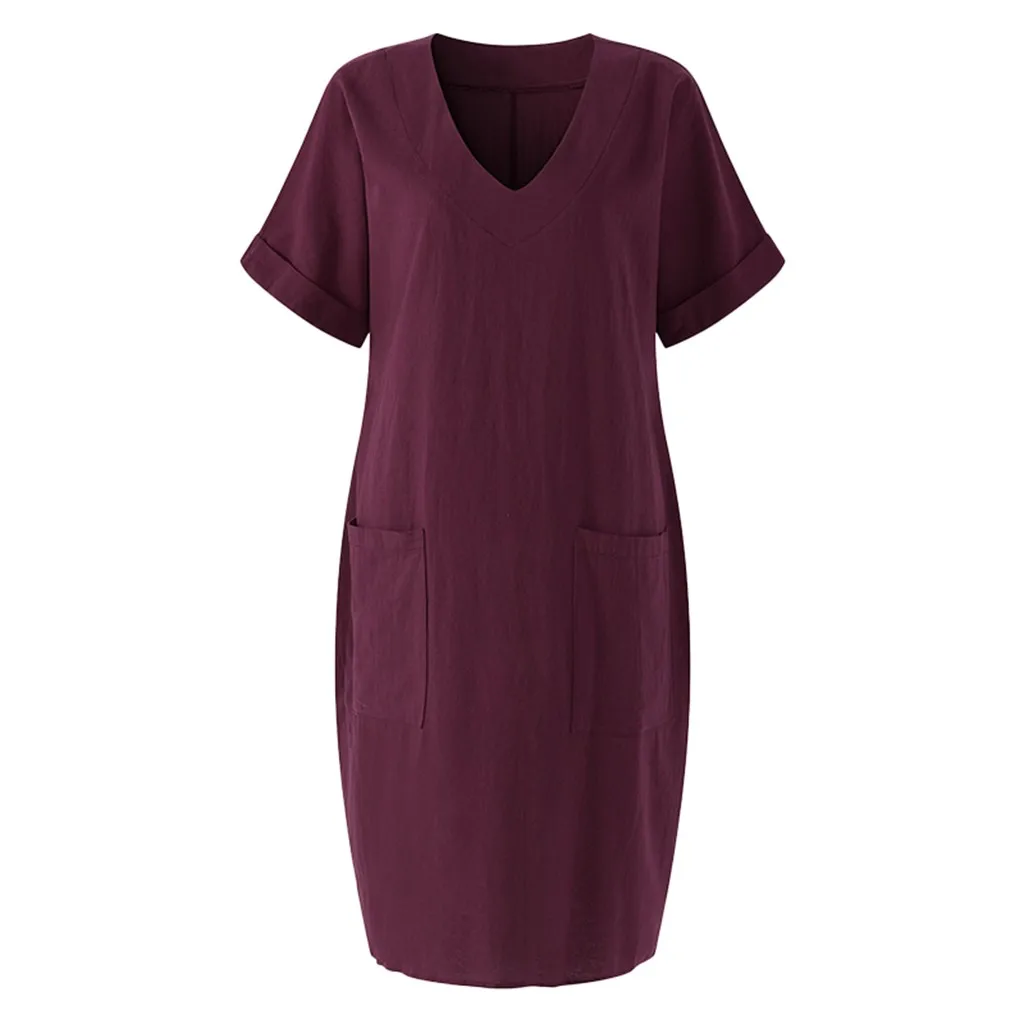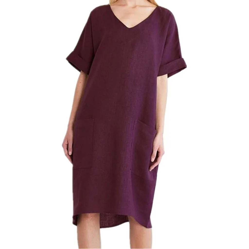 Женские свободные платья, повседневное однотонное женское платье с V-образным вырезом и коротким рукавом, повседневное льняное черное пляжное платье с карманами, платья 5XL # A3