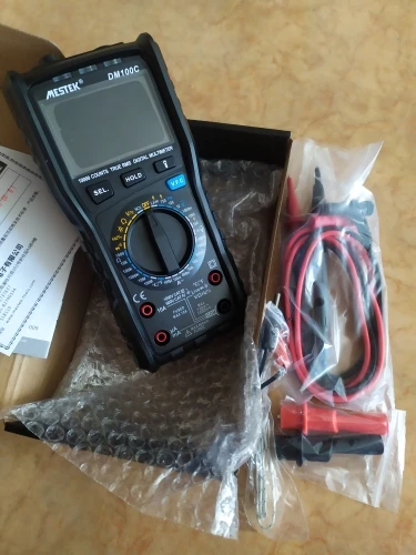 Упаковка хорошо получена, хорошо упакована. Доставка в течение менее 10 дней. Заметное качество мультиметра. 1 маленький подарок поставляется с мультиметром. Спасибо. Идеально. Ps: батарейки не поставляются, я думаю, что они были указаны без батареи