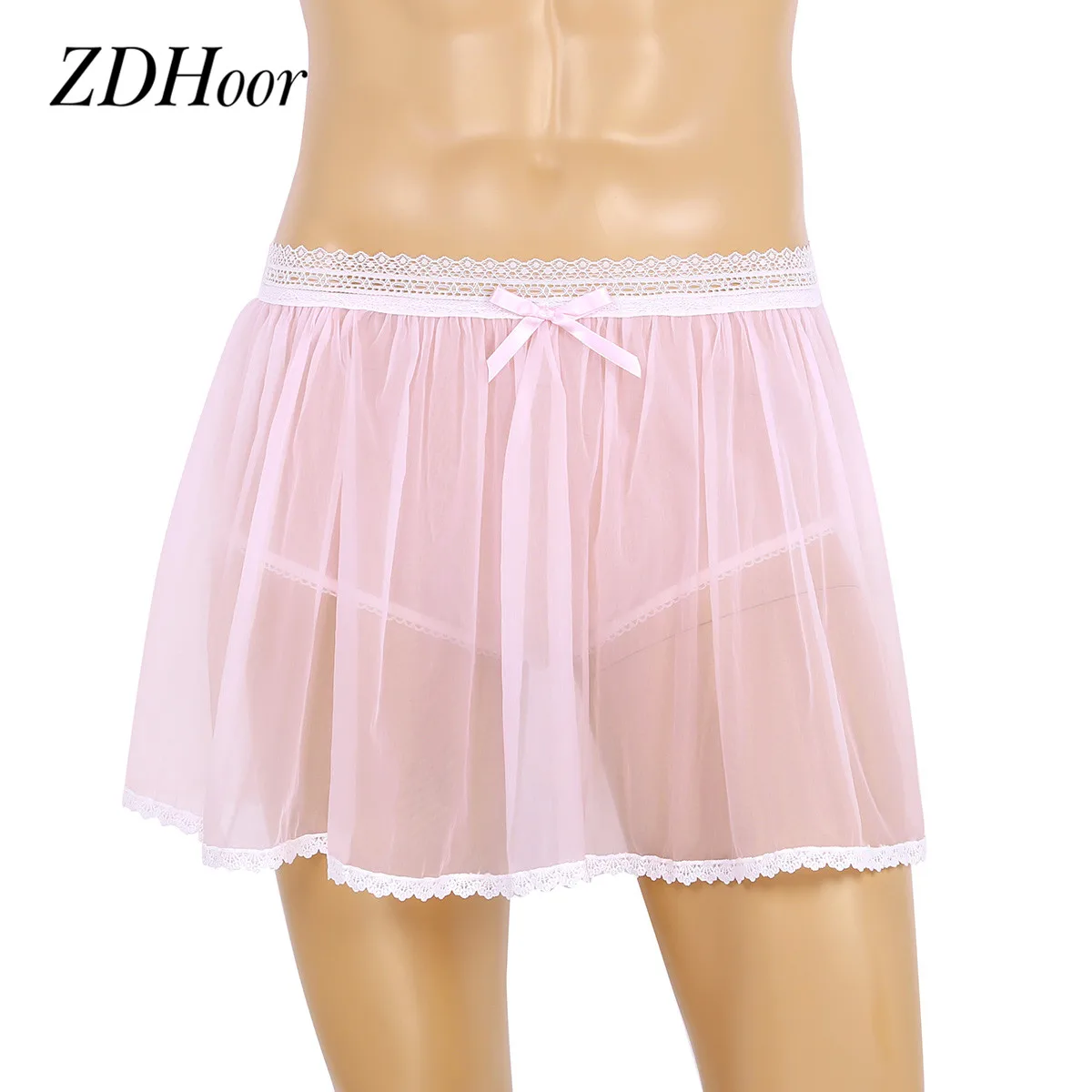 Мужские сексуальные экзотические кружевные трусы с оборками, прозрачные трусы-нижнее белье Sissy с оборками, кросс-платье, короткая юбка, трусы