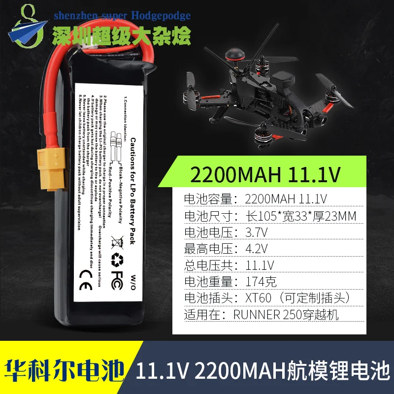 Литий-полимерный аккумулятор 11,1 В 2200 мАч 3S XT60 для Walkera Runner 250 250-Z-26 RC Qudcopter Drone, запасные части, батарея 11,1 В, 1 шт.