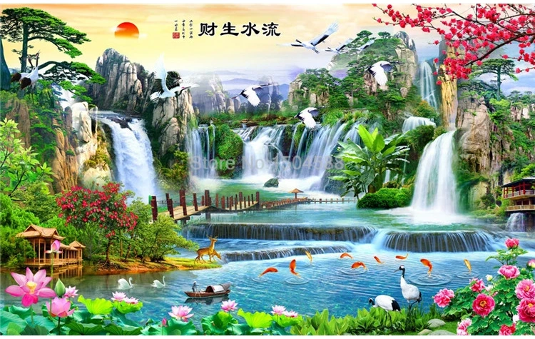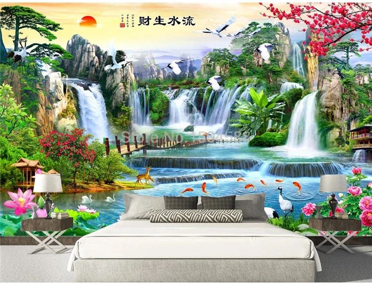 Пользовательские фотообои в китайском стиле 3D стерео водопад природный пейзаж фрески гостиная телевизор диван кабинет обои для гостиной