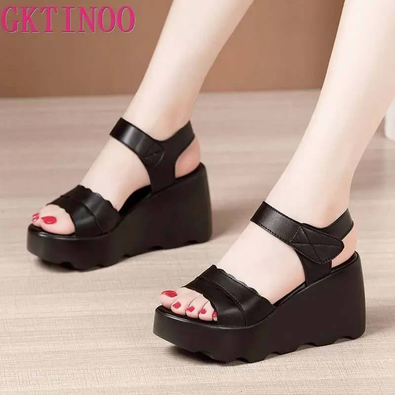GKTINOOЛетняя женская обувь; Женские сандалии с открытым носком на каблуке 8 см; Модные сандалии с открытым носком на платформе; Женская летняя обувь из кожи